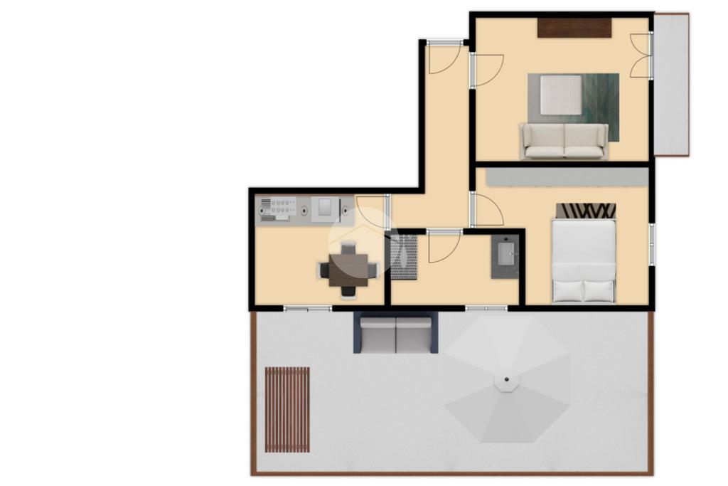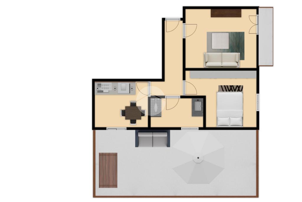 Bilocale – Soggiorno – Cucina separata abitabile – Camera da letto matrimoniale – Bagno – Balcone – Terrazza – Garage – Cantina.