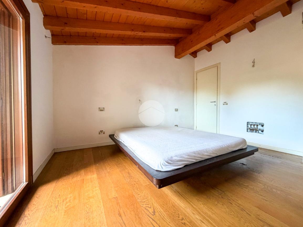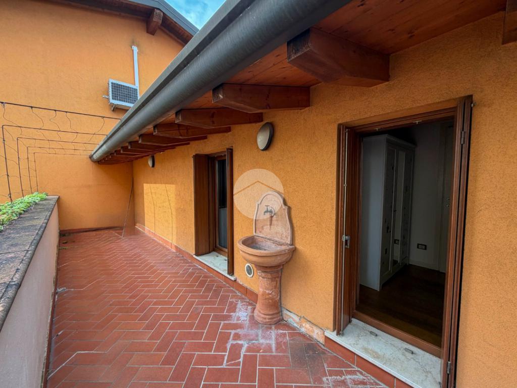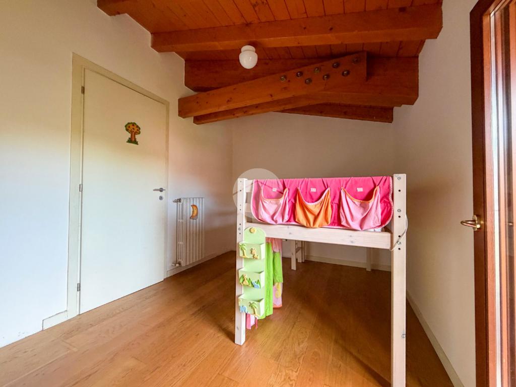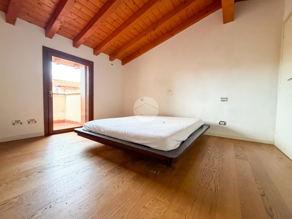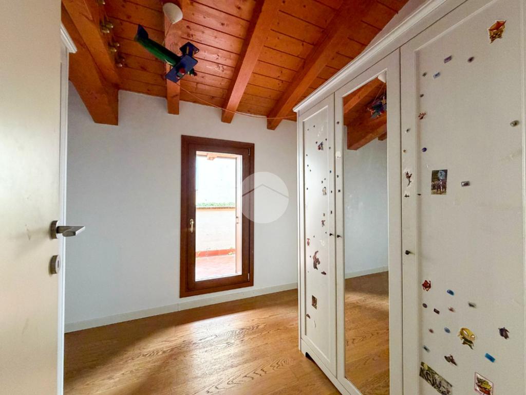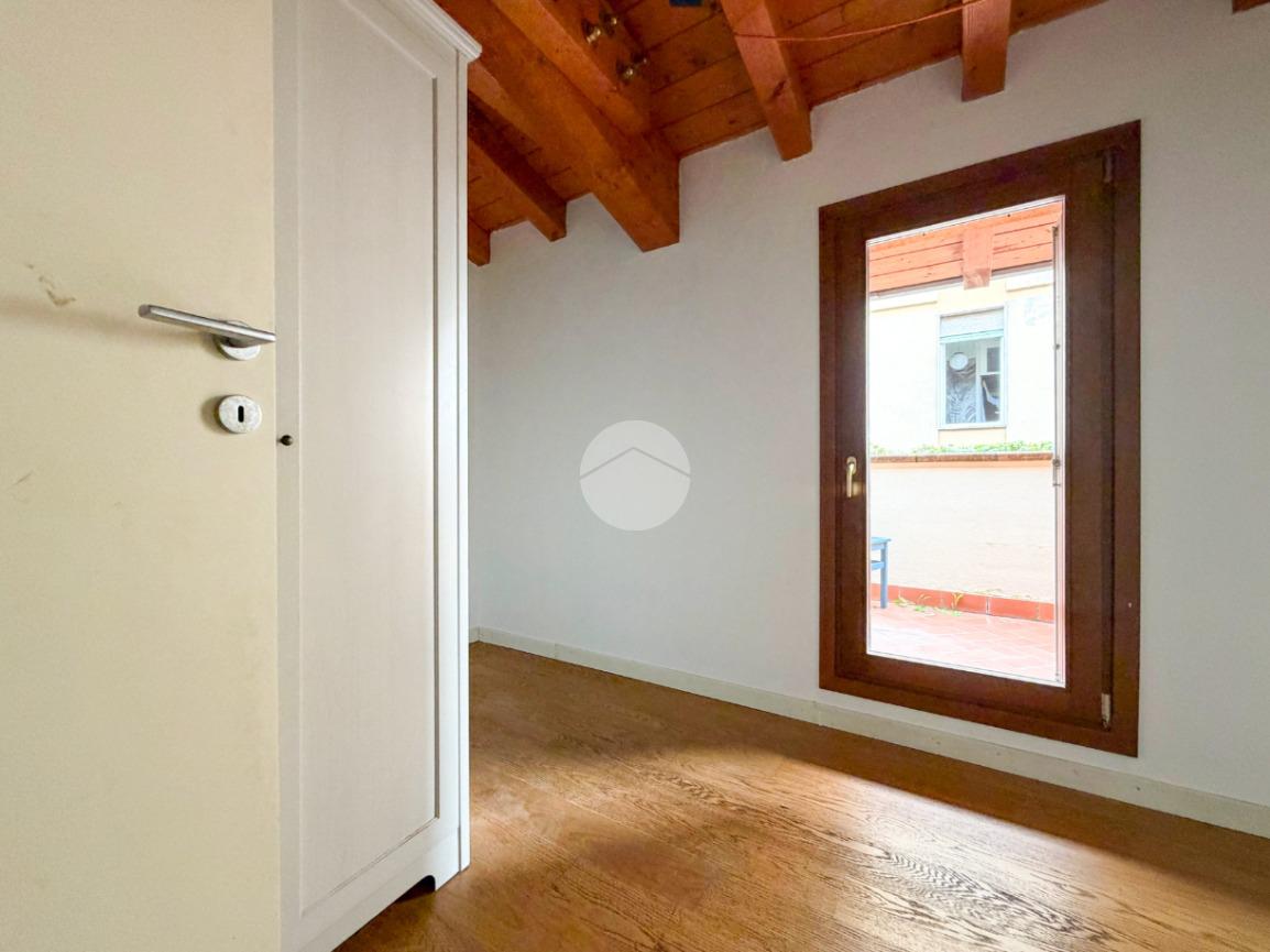 Internamente: Soggiorno con cucina uniti nello stesso spazio, doppia esposizione tramite due balconi e soffitto con travi a vista.