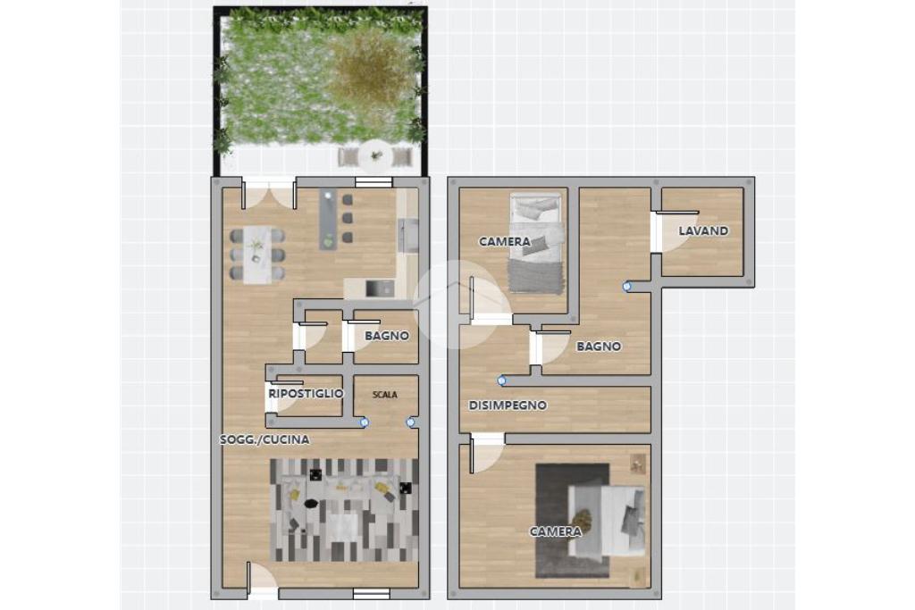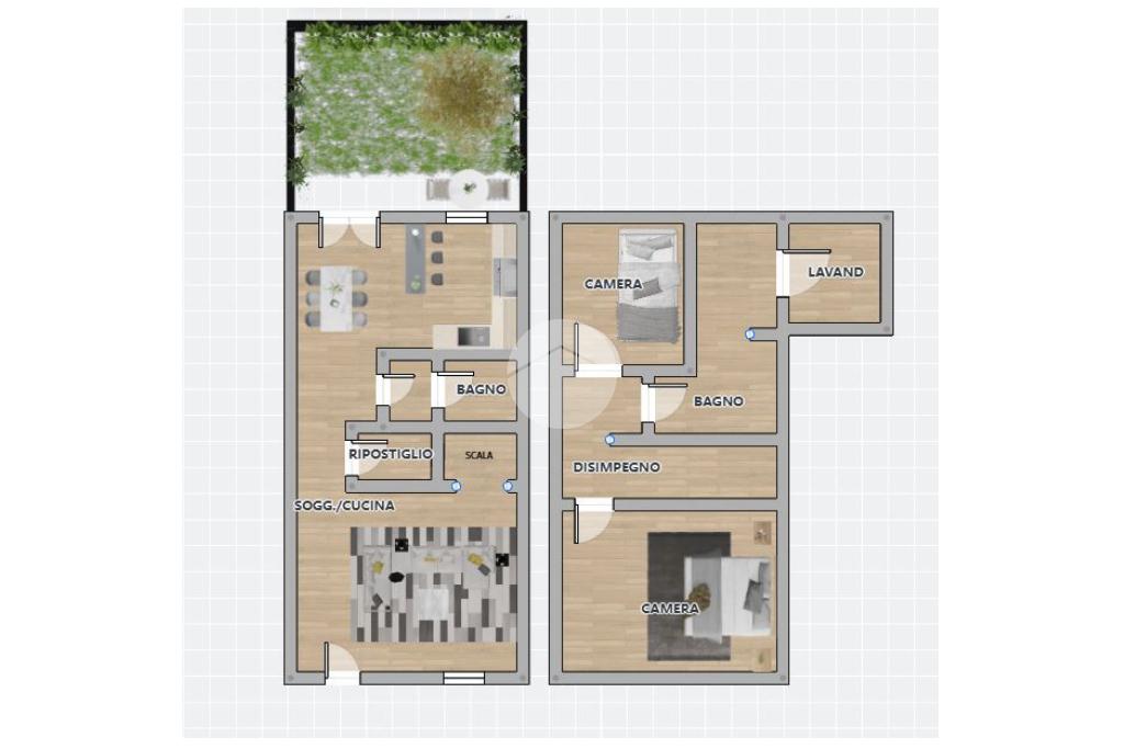 Porzione di casa – Soggiorno – Cucina separata – Tre camere da letto – Doppi servizi – Corte esclusiva.